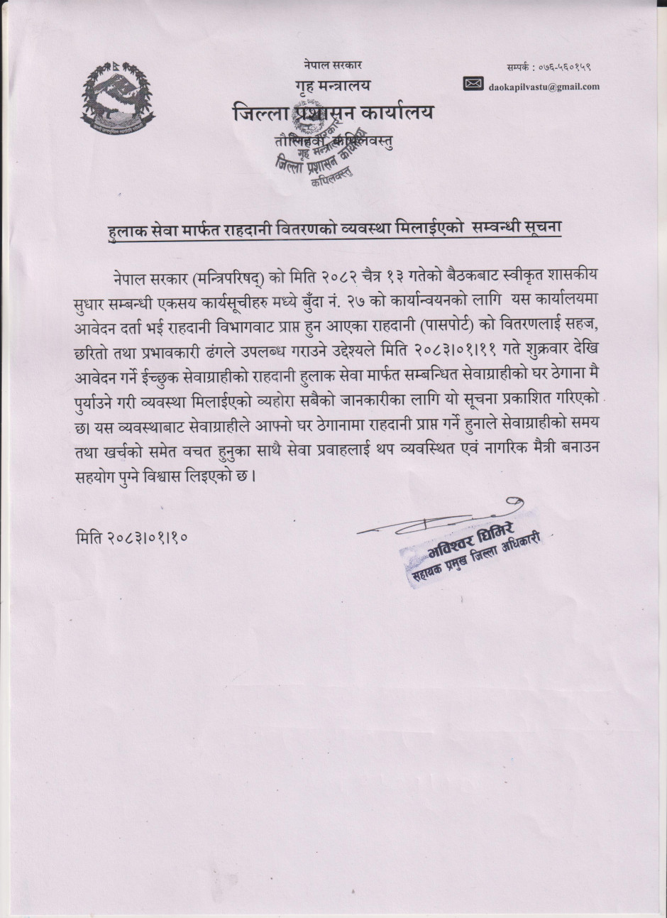 © सर्वाधिकार सुरक्षित जिल्ला प्रशासन कार्यालय, कपिलवस्तु .