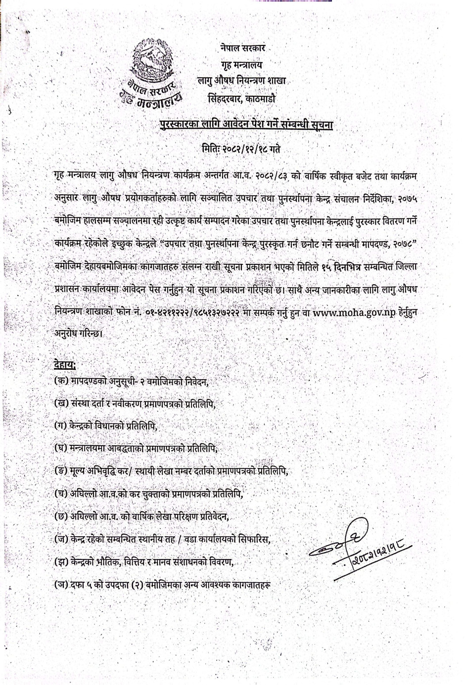 पुरस्कारका लागि आवेदन पेश गर्ने सम्बन्धी सूचना