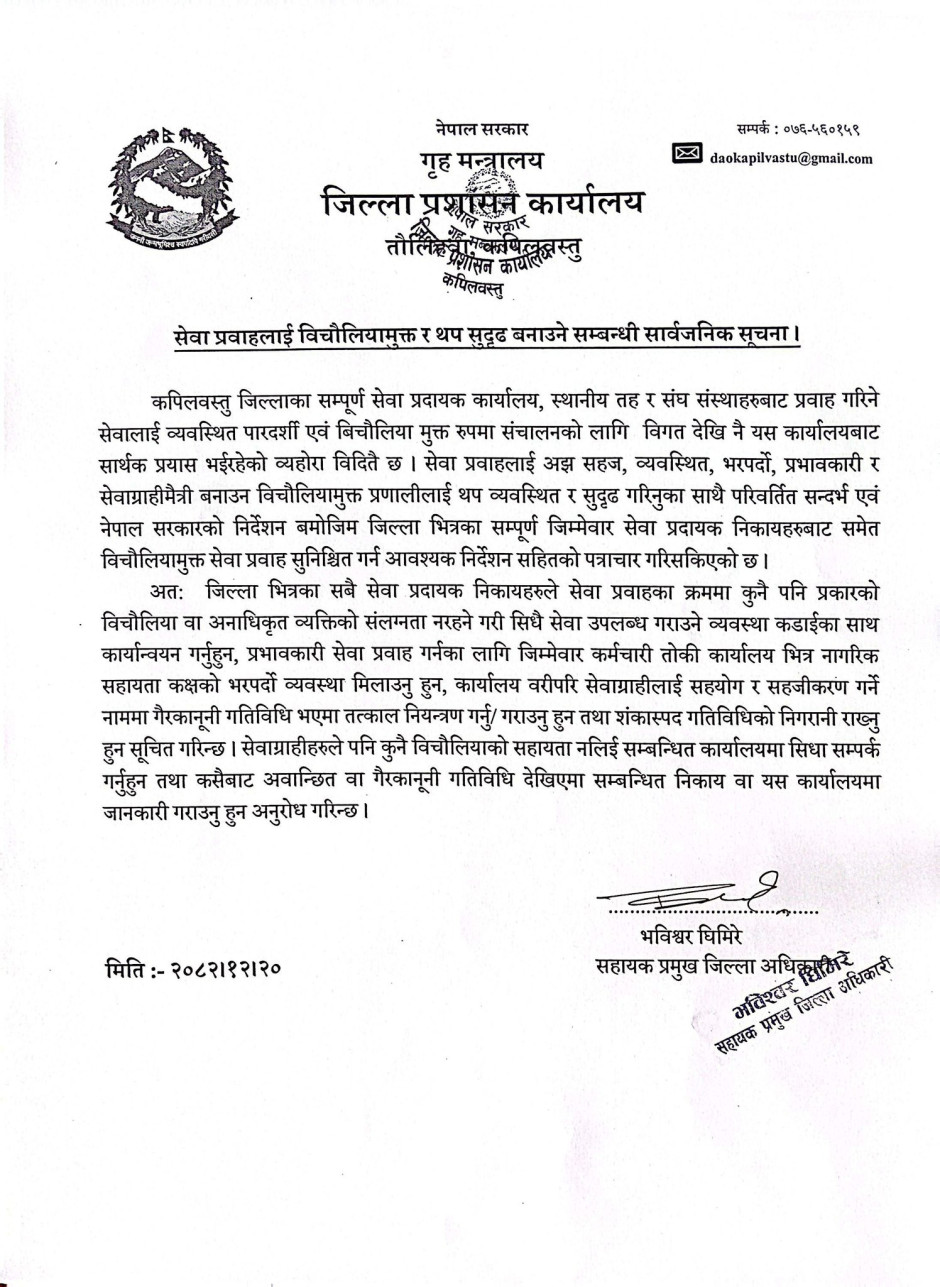 जिल्ला प्रशासन कपिलवस्तुको अनुरोध ।